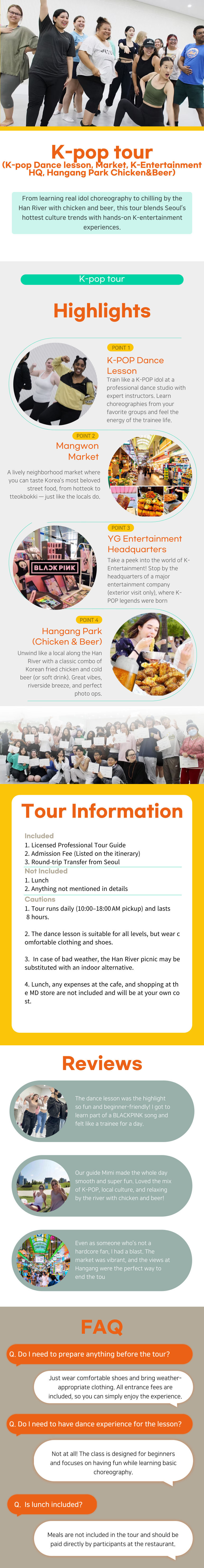 [Small Group Tour] K-pop tour(K-pop Dance lesson, Market, K-Entertainment Headquarter, Hangang Park Chicken&Beer)